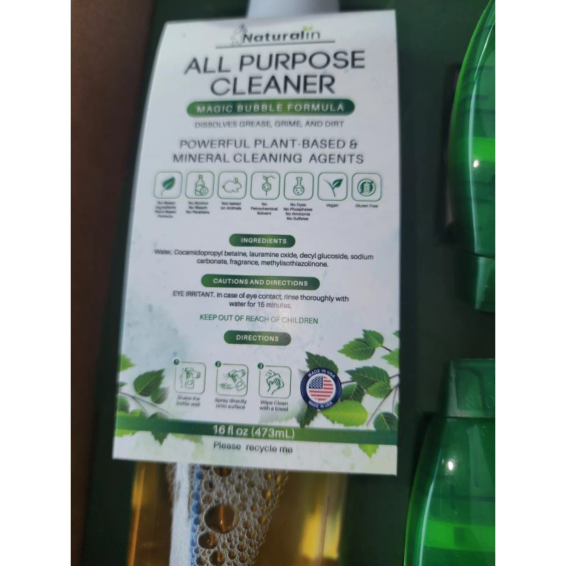 Naturalin All Purpose Cleaner Magic Bubble Formula (2) 16 oz bottles with sprayer attachments.