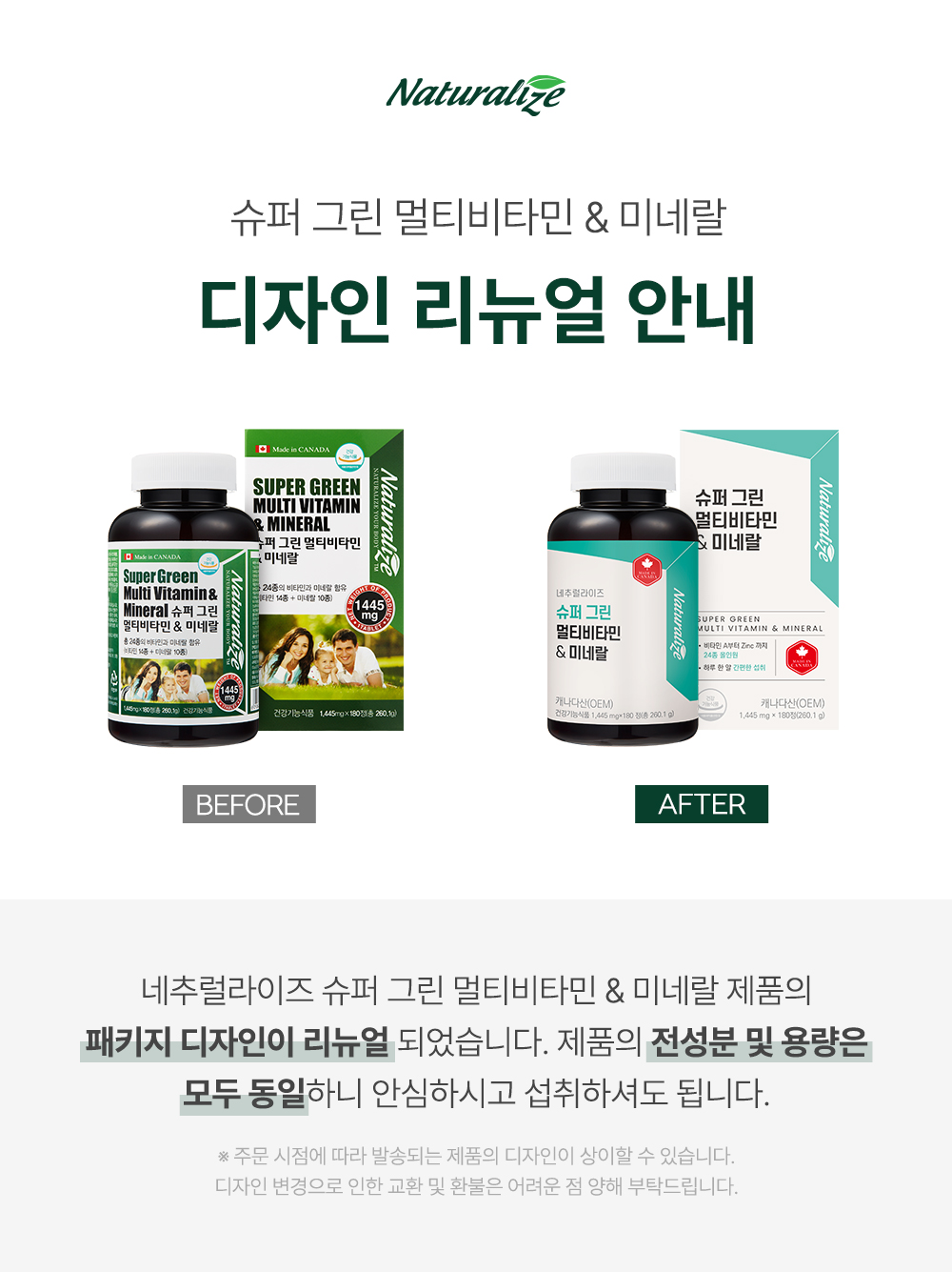 네추럴라이즈 24종 슈퍼그린 멀티비타민 앤 미네랄 2박스 12개월
