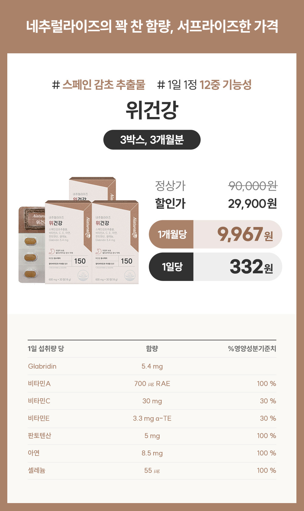 네추럴라이즈 위건강 3박스 총3개월분 위에 좋은 헬리코박터 스페인감초추출물