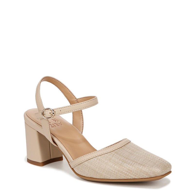 Naturalizer Women's Wave Ankle Strap Closed Toe Dress Heels Pump, Tan Straw, 6.5 Wide