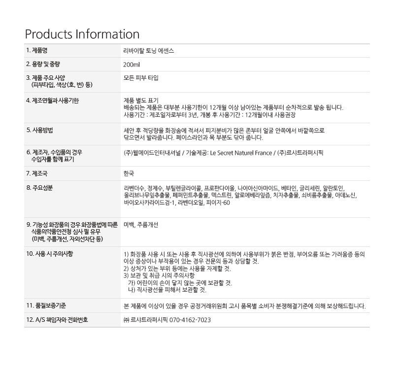 | 판매자 | 주식회사 르샤트라퍼시픽 | 연락처 | 010-9157-2300 |