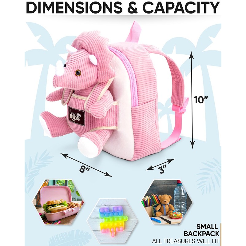 Naturally KIDS Naturally KIDS Pink Triceratops Toy, Triceratops Stuffed Animal for 2 3 4 5 Year Old Girl, Stuffed Dinosaur for Girls, Pink Toddler Backpack