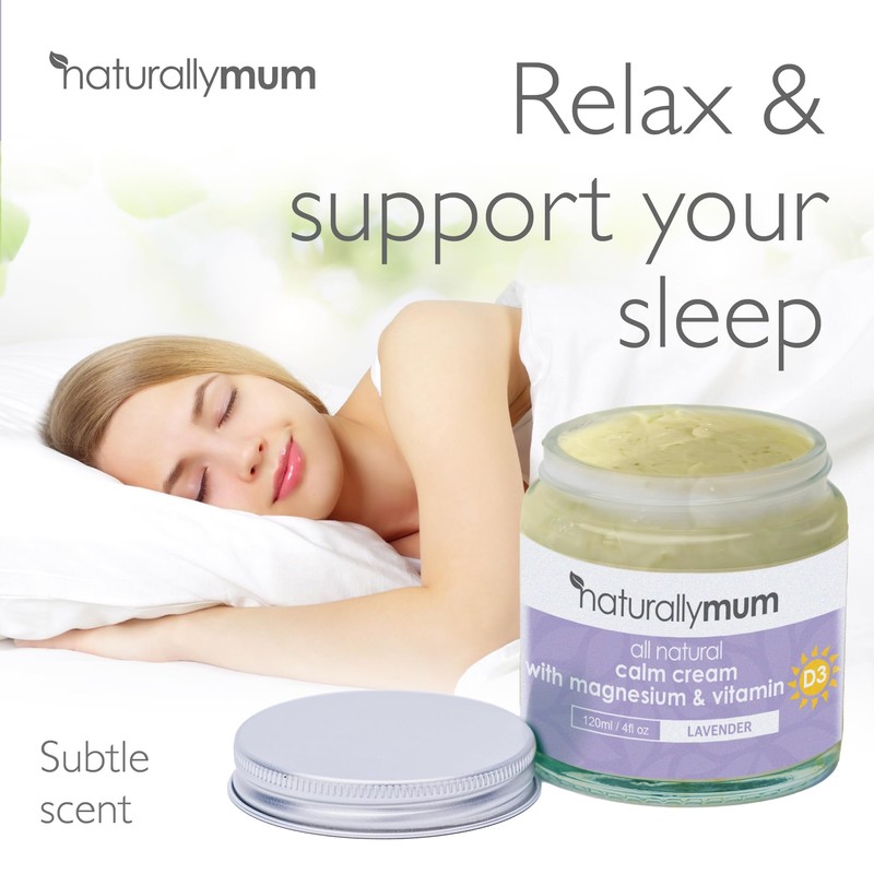 NaturallyMum Calm Cream with Magnesium and Vitamin D | Support for Sleep, Heart, Bone, Nerve, Gut and Muscle Health | Topical Cream with Turmeric and Arnica | Lavender | 4fl oz