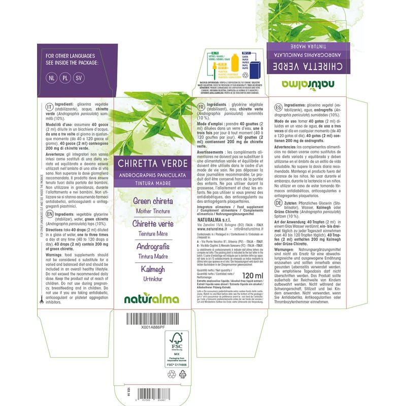 - Green chiretta (Andrographis paniculata) tops Mother Tincture concentrated extract 1:10. 100% Natural, alcohol and sugar free. Made in ITALY.