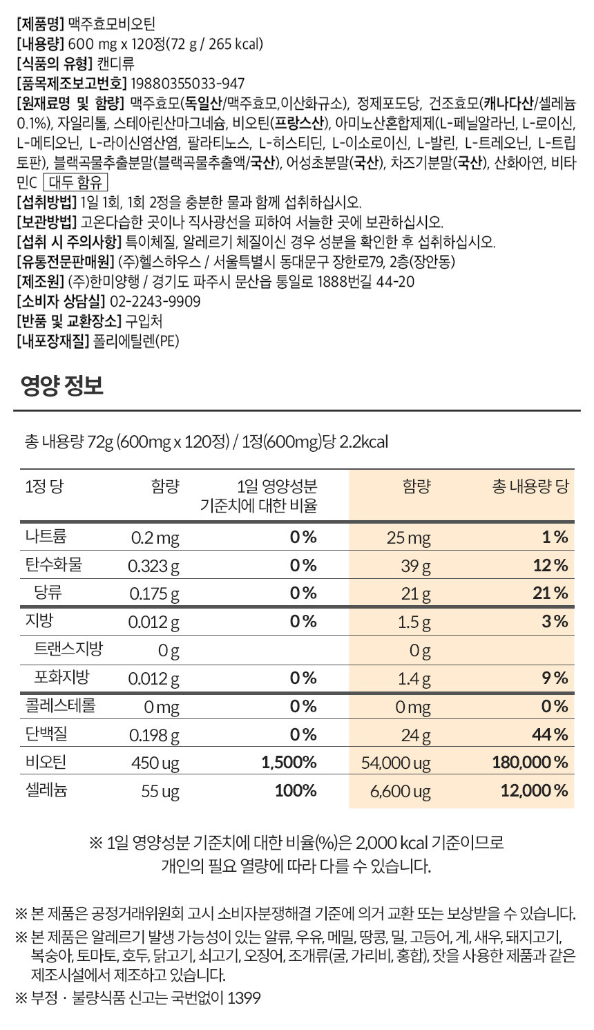NaturalPlus Brewer's Yeast Biotin / 내츄럴플러스 맥주효모 비오틴