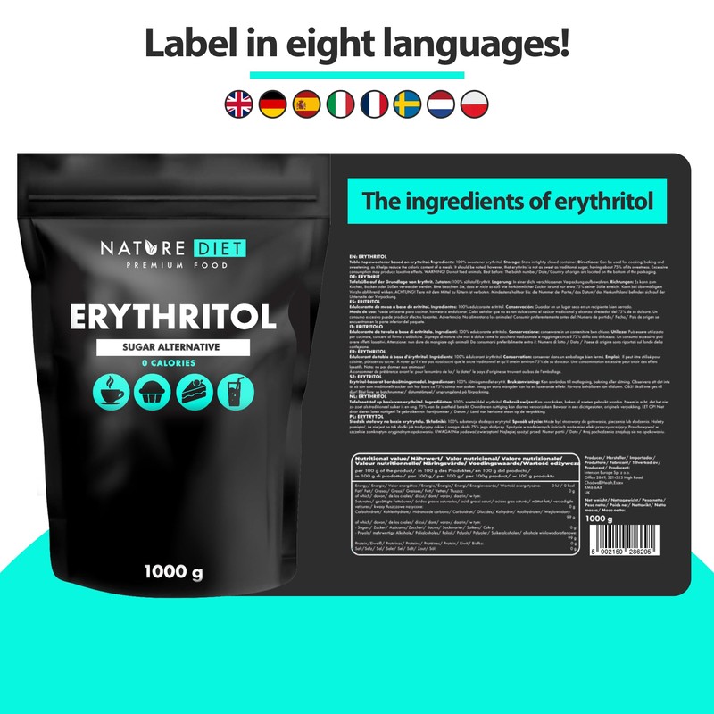 Nature Diet Nature Diet - Erythritol 1000 g, Natural Sweetener, Zero Calories, Sugar Replacement, Sugar Substitute