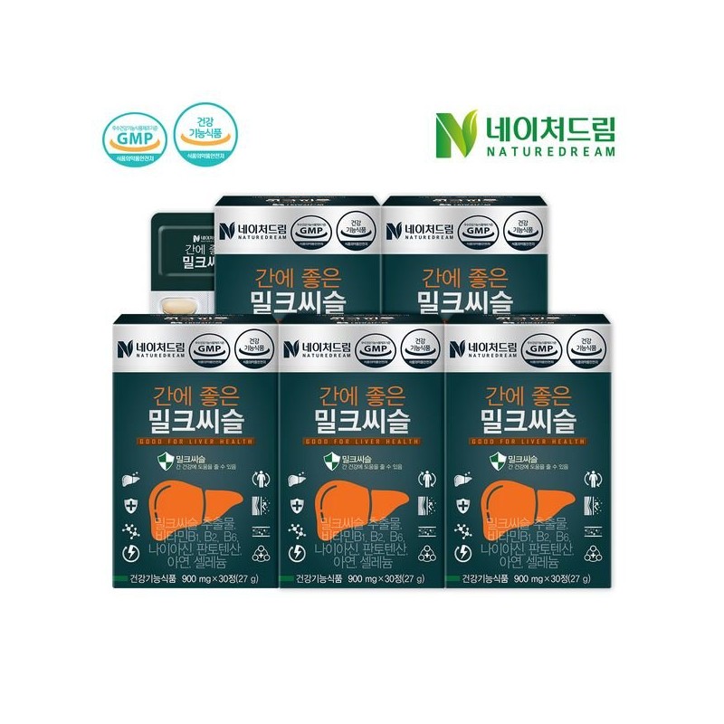 Nature Dream [Half Club/Nature Dream] 5 boxes of Milk Thistle 900mg x 30 tablets, which is good for the liver, 5 boxes of Milk Thistle / 네이처드림 [하프클럽/네이처드림]간에 좋은 밀크씨슬 900mg x 30정 5박스, 밀크씨슬 5박스