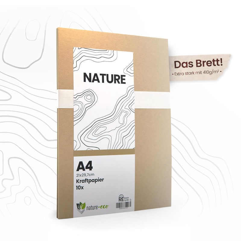 nature-eco 10 Sheets Kraft Card – The Board – Brown Kraft Paper DIN A4 Extra Thick 410 g/m² as Craft Card or Creative Cardboard Paper Cardboard or Sturdy Cardboard for Crafts