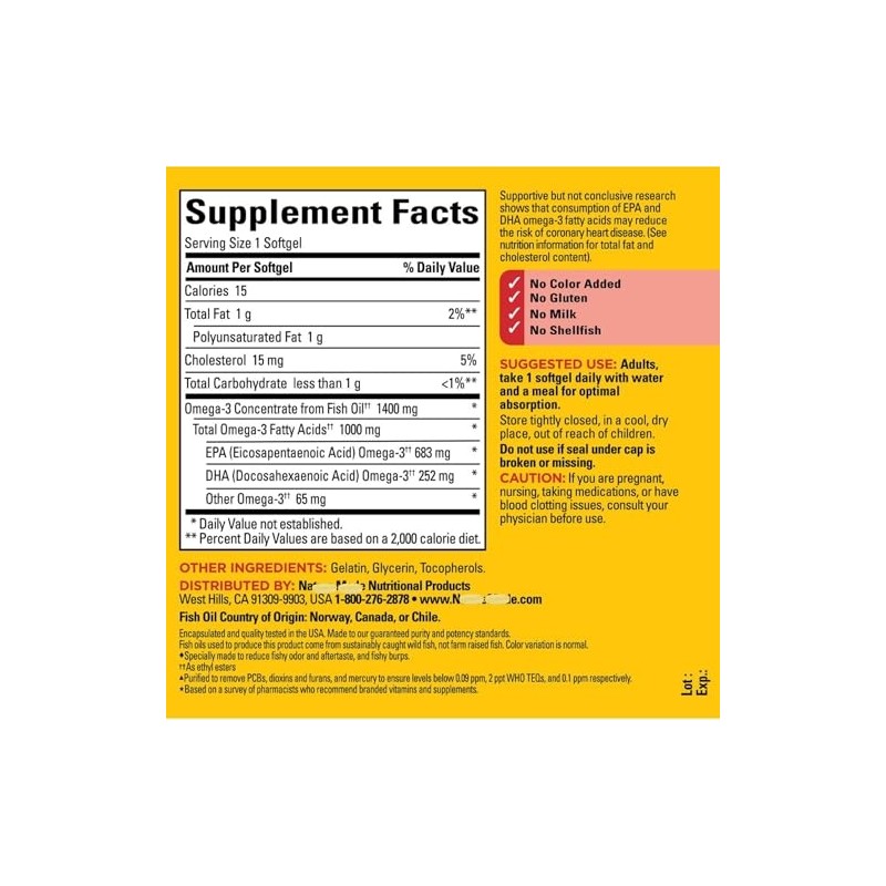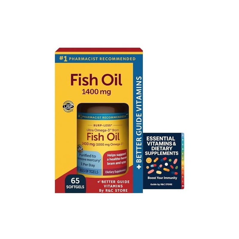 Nature Fish Oil 1400 mg | Omega-3 Concentrate from Fish Oil (65 Softgels) Natures_Mades | Includes Essential Vitamins & Dietary Supplements Guide by R&C Store