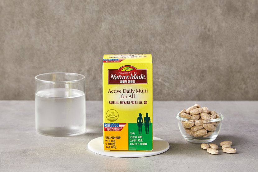 가족에게 필요한 비타민 12종, 미네랄 10종을 함량까지 고려하여 담은 네이처메이드 액티브 데일리 멀티 포 올입니다. 20가지 영양소가 1일 영양성분 기준치 100% 이상에 부합하도록 만들었어요. 특히 한국인의 일일 영양 권장량을 고려하여 꼼꼼하게 설계되었답니다. 식생활에서 부족한 영양소를 네이처메이드 액티브 비타민으로 보충해보세요.