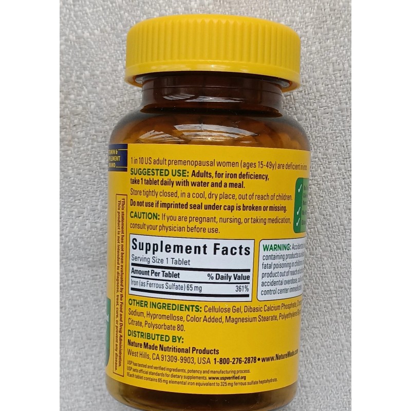 Nature Made Iron 65 mg - 365 Tablets Dietary Supplement Jan 2027