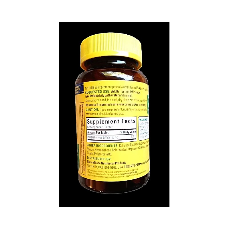 Nature Made Iron 65mg/325mg FeSO4 365 Tablets Dietary Supplement Exp 01/2027
