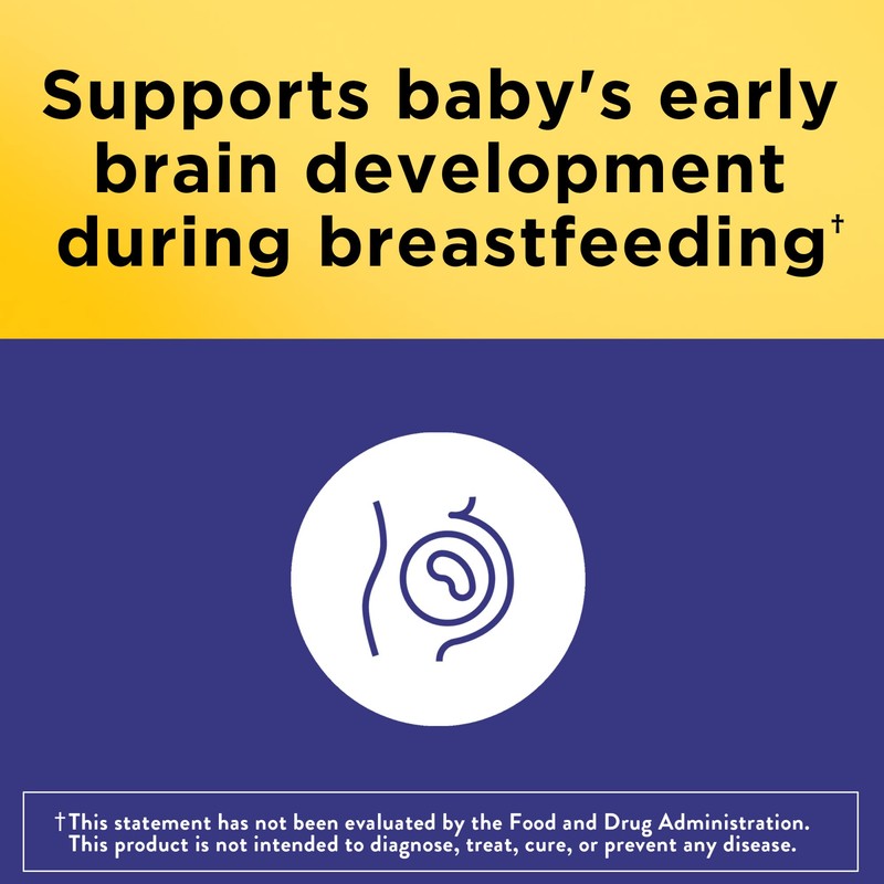 Nature Made Postnatal Multivitamin + DHA is designed to support the increased nutritional needs of nursing moms while continuing to support baby’s development while breastfeeding. Energy requirements are higher during lactation and the body needs certain nutrients in adequate amounts to meet those increased energy demands. This postnatal multivitamin offers higher amounts of Vitamins A, C, D3, and E, compared to our Prenatal Multi + DHA, to support mom’s nutritional needs while breastfeeding. Each serving (1 softgel) contains postnatal Vitamins A, C, D3, E, plus all 8 B vitamins - and also includes DHA, Calcium, Iron, Iodine, Magnesium, and Zinc. DHA is an important Omega-3 fatty acid that helps support fetal brain and eye development. Calcium and Vitamin D work together to build and support strong bones for both baby and mom. Iron is vital for red blood cell formation and to deliver oxygen to cells throughout the body. Nurse healthy habits while nursing, with Nature Made Postnatal Multivitamin + DHA. USP has tested and verified ingredients, potency and manufacturing process. USP sets official standards for dietary supplements. Visit the USP verified website for more information.