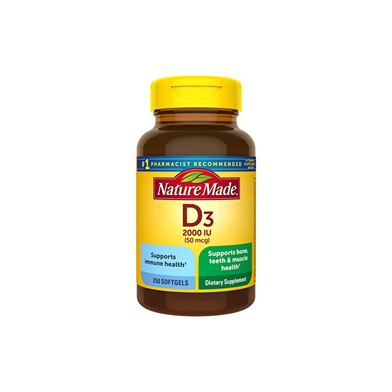 Nature Made Nature Made Vitamin D3 2000 IU (50 mcg), Dietary Supplement for Bone, Teeth, Muscle and Immune Health Support, 250 Softgels, 250 Day Supply