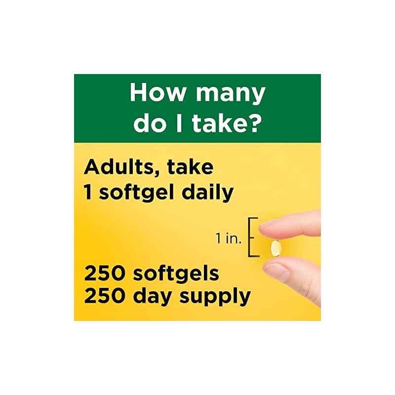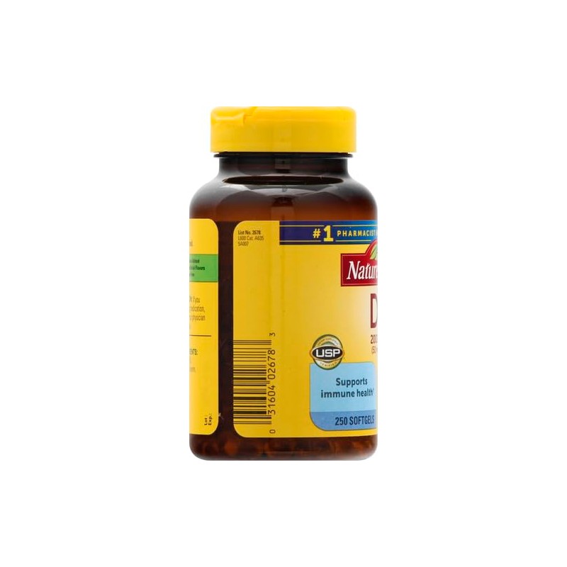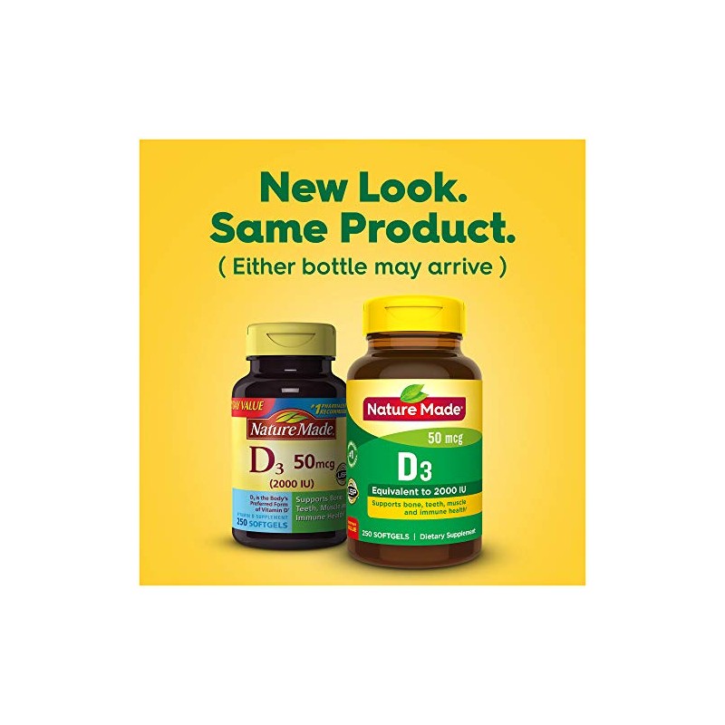 From the Manufacturerview larger Nature Made Vitamin D 2000 IU Softgels, 250-countMaintaining healthy levels of vitamin D in your body has been shown to be an important part of your overall health. Nature Made Vitamin D 2000 IU softgels are made with vitamin D3, the body's preferred form of vitamin D. Vitamin D supports bone, teeth, muscle and immune health.? Helps Maintain Healthy Vitamin D LevelsDepending on your status and other related factors, 1000 C 5000 IU per day of vitamin D is a commonly recommended dose range by health care professionals and supported by research. Higher levels may be recommended in a deficiency state.? Supports Strong Bones and Teeth?Vitamin D helps build and maintain strong bones and teeth by enhancing calcium absorption, regulating concentrations of calcium and phosphorus in the body, and regulating bone remodeling processes. Adequate calcium and vitamin D throughout life, as part of a well-balanced diet, may reduce the risk of osteoporosis. Nature Made Vitamin D is an easy way to get adequate amounts of this vital nutrient.? Supports Muscle Health?Vitamin D is also important for muscle health because it supports muscle function, strength and balance.? Supports a Healthy Immune System?Research demonstrates that vitamin D supports immune health, playing a crucial role in both acquired and innate immune responses.? Get the Body's Preferred Form of Vitamin DVitamin D supplements come in two forms: vitamin D2 and vitamin D3. Nature Made Vitamin D contains D3, which is more effective at raising and maintaining adequate levels of circulating vitamin D in the body.? Nature Made's Commitment to Your HealthEveryone wants a firm foundation to stand upon when making decisions about their health. Since 1971, the Nature Made brand has been dedicated to supporting your health with a wide range of high quality vitamin supplements. Because of their strong stand on quality and science for more than 40 years, Nature Made has earned recognition and trust among nutrition experts and people just like you.Nature Made became the first national vitamin brand in the U.S. to earn United States Pharmacopeia (USP) verification on many of its products. USP is a scientific, nonprofit organization that has been setting federally-recognized, public standards of quality for medicines; dietary supplements; and food ingredients. Safe and Quality IngredientsAll Nature Made products are made in accordance with strict Good Manufacturing Practice standards. Their nutrition supplements are made from carefully selected ingredients from trusted suppliers. Nature Made products are guaranteed to meet high quality standards of purity and potency. When you take the vitamins behind that familiar yellow label, know that you're taking the best for your health.This supplement contains no artificial flavors, colors, preservatives, yeast, starch, or gluten.? These statements have not been evaluated by the Food and Drug Administration. This product is not intended to diagnose, treat, cure or prevent any diseases. Nature Made Vitamin D At-a-Glance Helps maintain healthy vitamin D levels ? Supports bone, teeth, muscle and immune health ? Enhances calcium absorption ? Contains vitamin D3, the body's preferred form What's in the Box250 softgels UsageSuggested Use: Take 1 softgel daily with a meal.Product DescriptionNature Made Vitamin D3 2000 IU Softgels (50 mcg) offer an easy way to add Vitamin D supplements to your daily routine to support bone, teeth and muscle health. Sourced from high quality ingredients, these Nature Made Vitamin D softgels are dietary supplements with no color added and no artificial flavors. Each Vitamin D3 2000IU softgel supports a healthy immune response and aids in calcium absorption. Vitamin D is a common nutrient shortfall. D3 vitamin is the body's preferred form of Vitamin D to help maintain Vit D levels. These Nature Made Vitamin D3 supplements contain 50mcg (2000 IU) of Vit D3 per serving. Adults, take one Vitamin D3 Nature Made softgel daily with water and a meal. This Nature Made Vitamin D supplement is quality you can trust. *Based on a survey of pharmacists who recommend branded vitamins and supplements. These statements have not been evaluated by the Food and Drug Administration. This product is not intended to diagnose, treat, cure or prevent any disease.Brand StoryByManufacturer Contact Information>