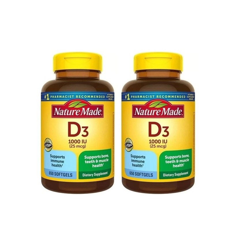 (Pack 2) Nature Made D3 1000 IU (25 mcg) Vitamin Supplement 300 Softgels - 05/27