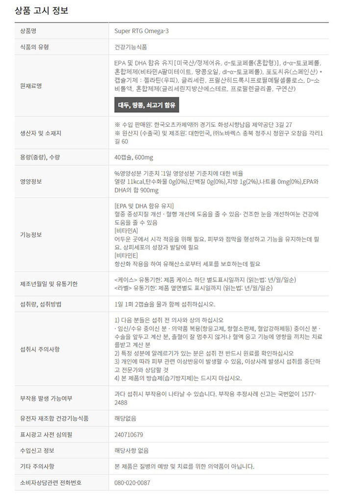Nature Made Super RTG Omega 3 900mg / 네이처메이드 슈퍼 RTG 오메가3 900mg