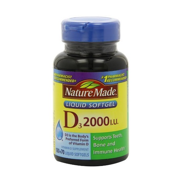 Nature Made, Vitamin D3 2,000 I.U. Liquid Softgels, 250-Count, Pack of 4