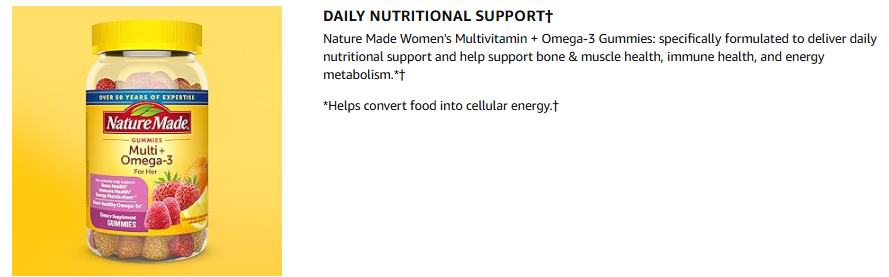 - Nature Made Women's Multivitamin with Omega-3 provides essential nutritional support, offering a 75-day supply with 150 gummies per bottle.