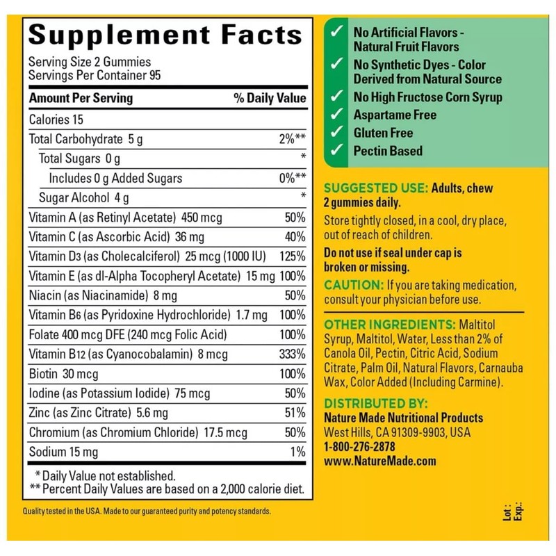 - This bundle include One Nature Mades Zero Sugar Multi Gummies, 190 Count. Provides Key nutrients help support a healthy immune system, bone and muscle health, and energy metabolism