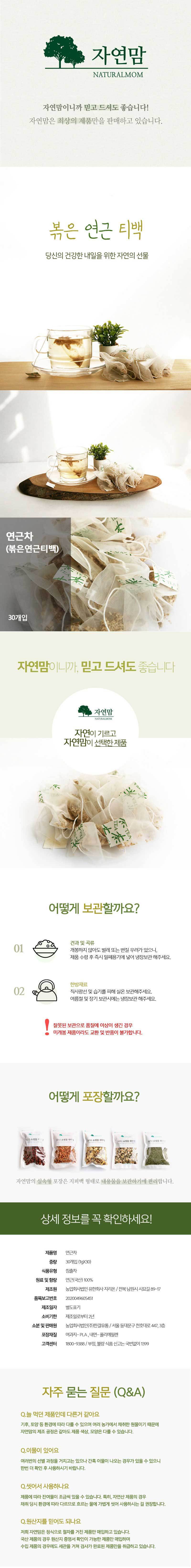 Nature Mom 국산 볶은 연근 티백 30개입 Korean Roasted Lotus Root Tea Bags 30 Pack