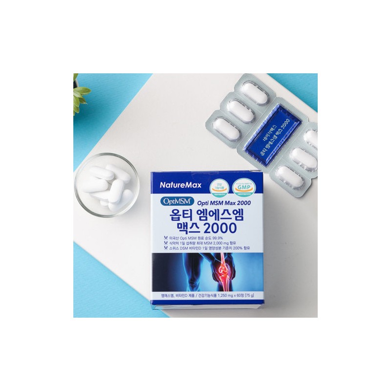 Nature Opti Dimethylsulfone Max 2000 MSM 60 tablets Joint Cartilage Health Green Mussel Calcium / 네이처 옵티 디메틸설폰 맥스 2000 MSM 60정 관절 연골 건강 우슬 녹색 홍합 칼슘
