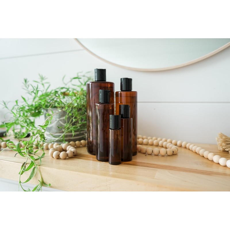 • Pack of 48: One order gives you a 48 pieces of 4oz plastic amber bottles with screw caps perfect for small businesses; can be used as massage oil bottle or travel bottles with labels