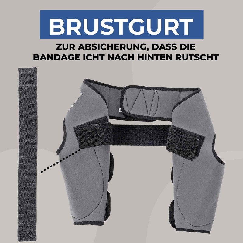 - Easy to put on thanks to large Velcro fasteners – optimally adjustable thanks to shoulder extension which can be used if necessary – chest strap to prevent slipping