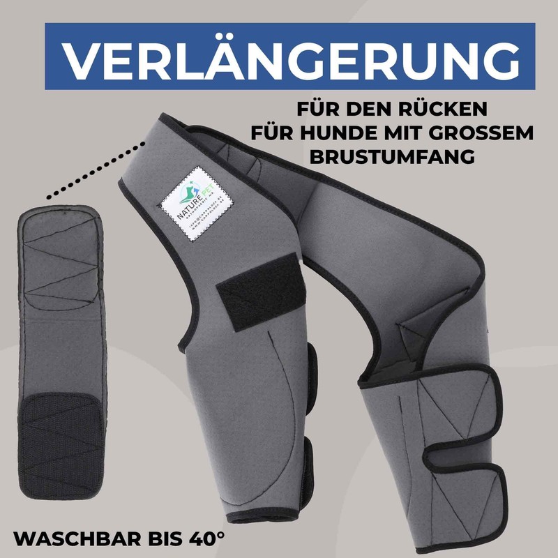 Easy to put on the elbow protection bandage is a matter of course. Place the bandage around the elbow, close with Velcro, Velcro on the back, done. The elastic chest strap can be used if the bandage may slip back on your dog.