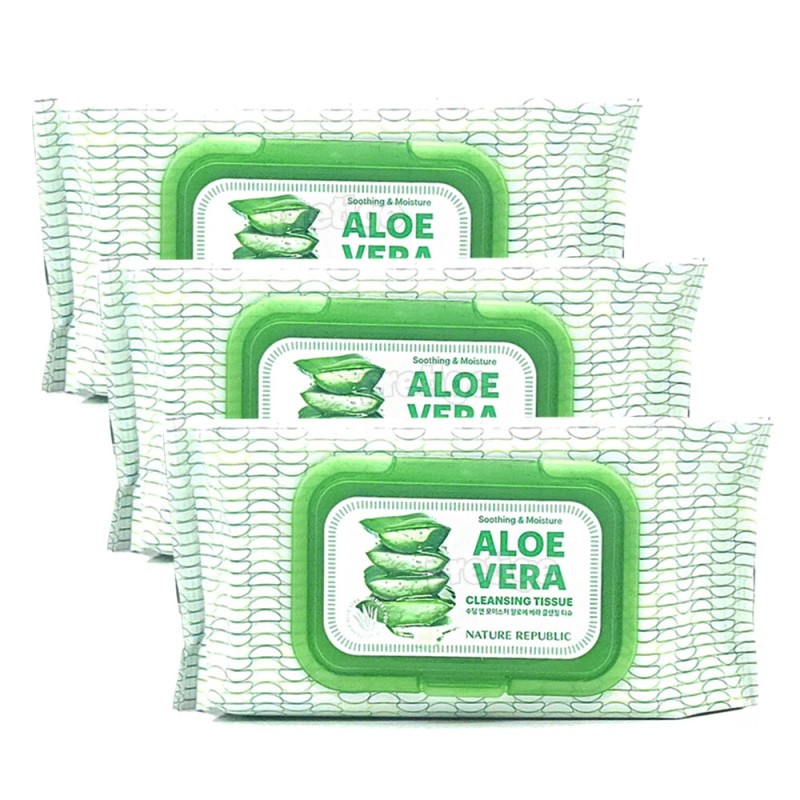 Nature Republic Aloe Vera Cleansing Tissue 80 sheets x 3 / 네이처리퍼블릭 알로에베라 클렌징 티슈 80매x3개