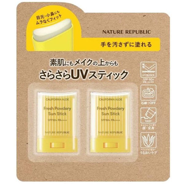 Nature Republic Powdery UV Aloe Stick 0.9 oz (24 g) x 2 Packs