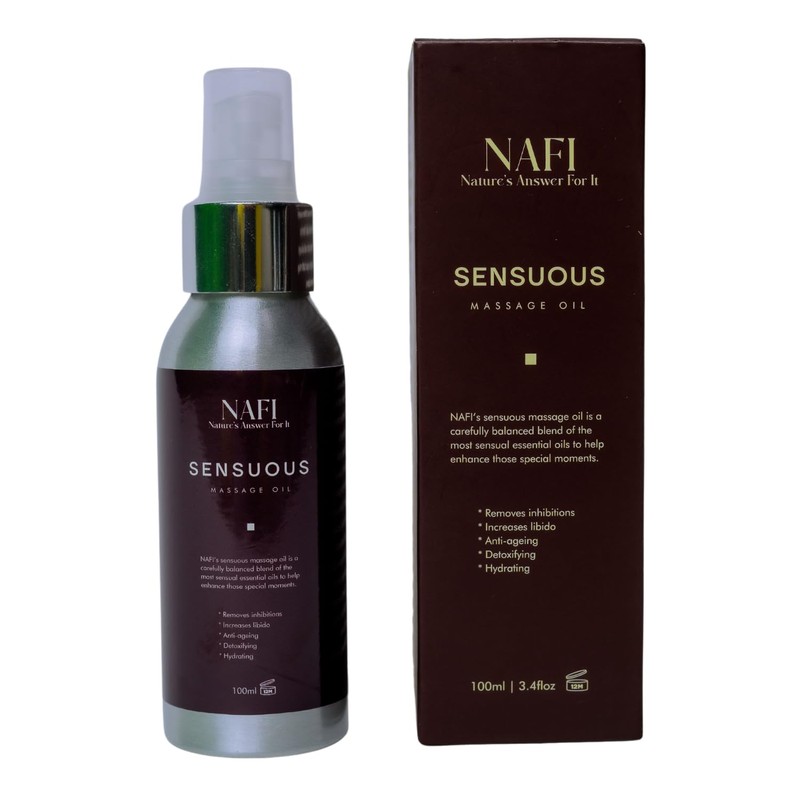 Anti-ageing * Detoxifying * Hydrating NAFI's sensuous massage oil is a carefully balanced blend of the most sensual essential oils to help enhance those special moments.
