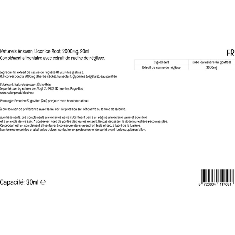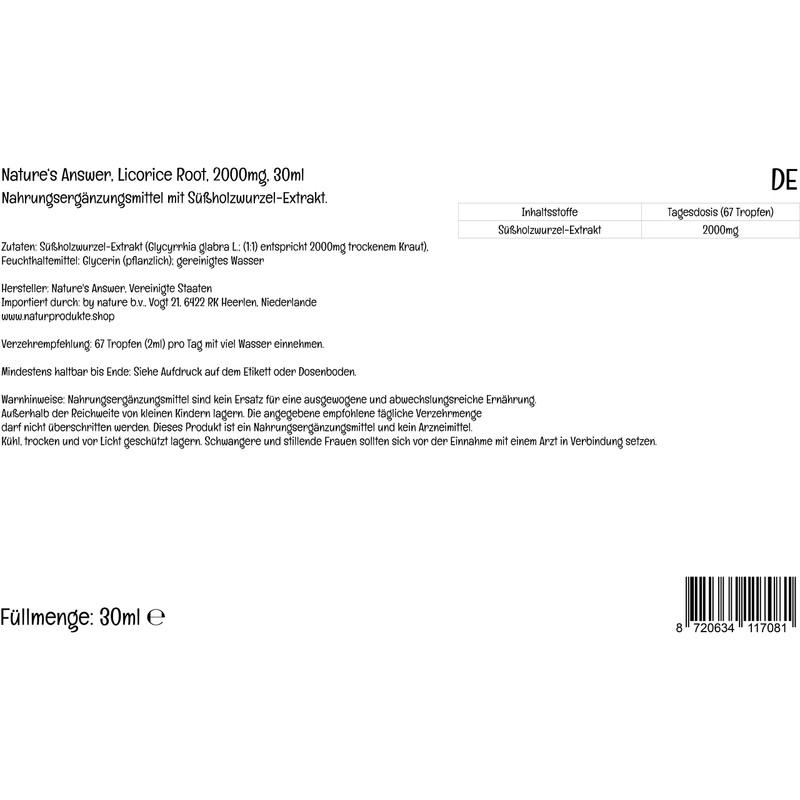 Nature's Answer, Licorice Root, 2000mg, 30ml, Lab-Tested, Gluten Free, Soy Free, Vegetarian, 30 ml (Pack of 1), Pack of 1