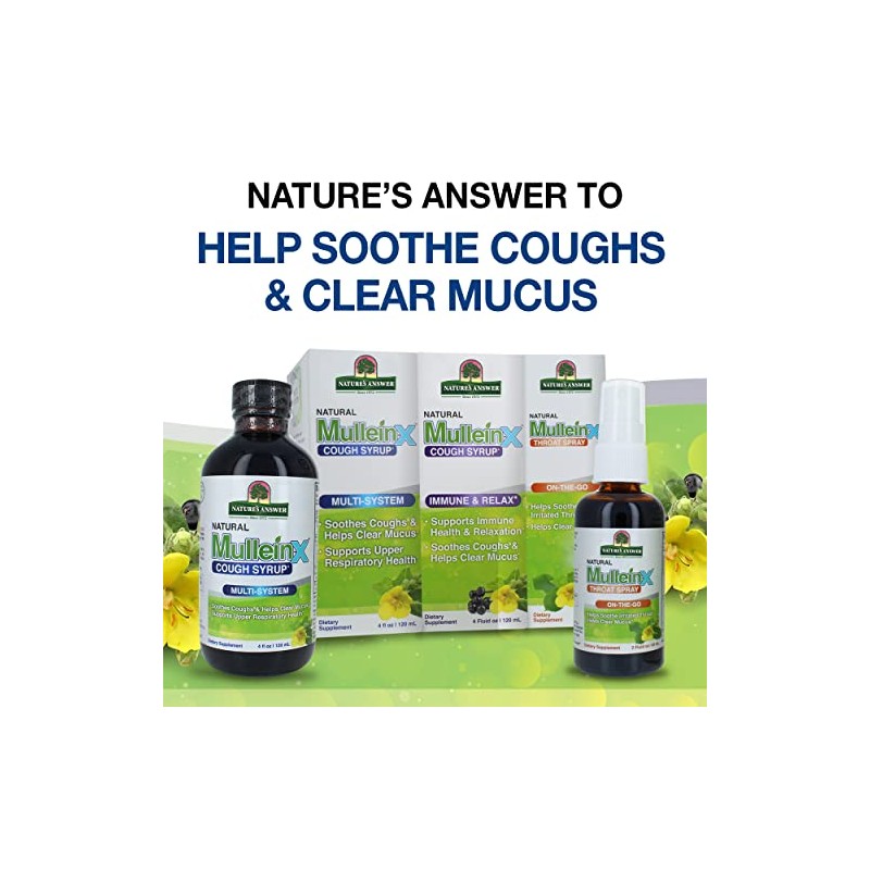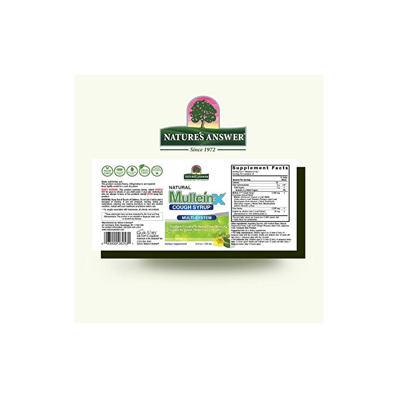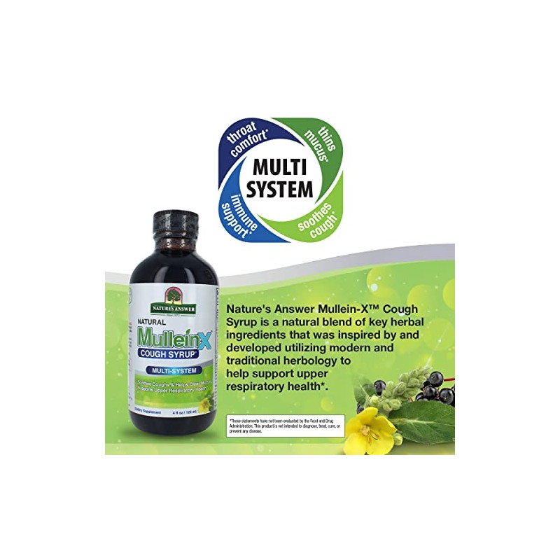 Nature's Answer Mullein-X Multi System Cough Syrup 4 Ounce | Soothes Coughs & Clears Mucus | Respiratory Support | Non GMO Gluten Free
