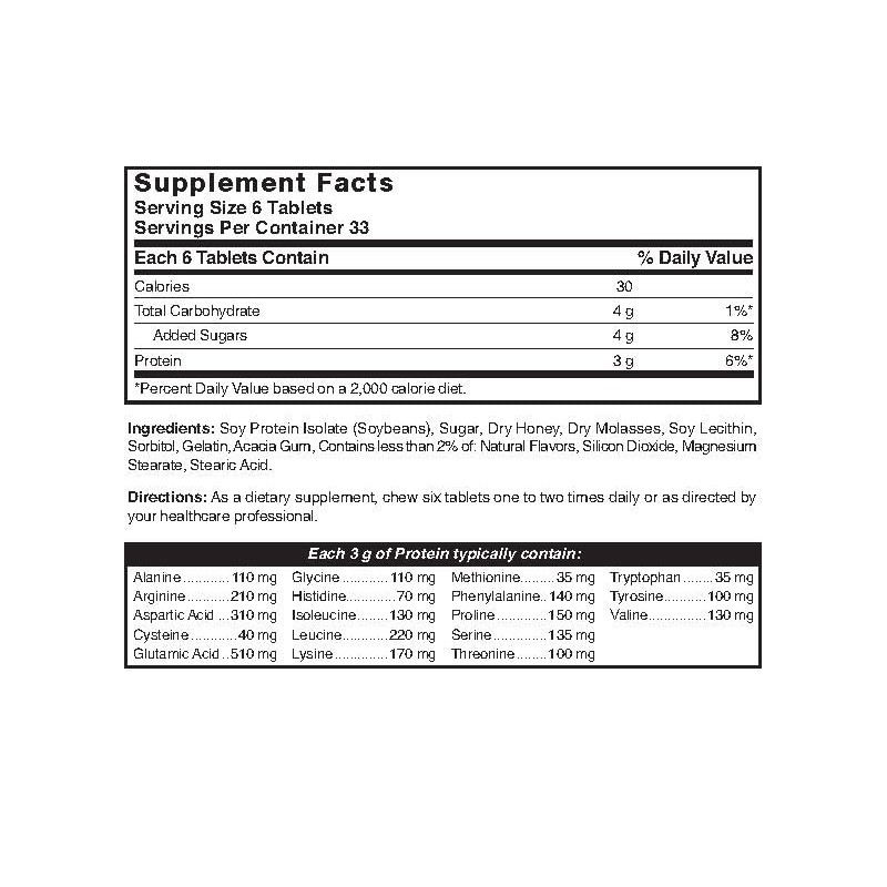 Chewable Protein Tablets from Nature's Blend are a super easy way to supplement your daily diet with a little extra protein. These honey flavored tablets provide 3 grams of protein per serving, and they are completely gluten free. If protein shakes aren't your favorite, try these chewable tablets instead.