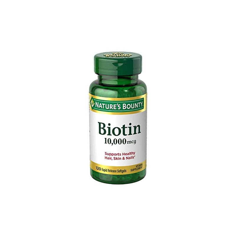 Nature's Bounty Biotin 10000 mcg, Supports Healthy Hair, Skin and Nails, Rapid Release Softgels, 120C t-..