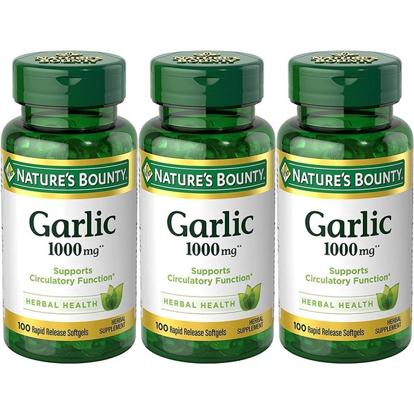 - Three 100 count bottles of 1000 mg Nature’s Bounty Garlic Supplement Softgels