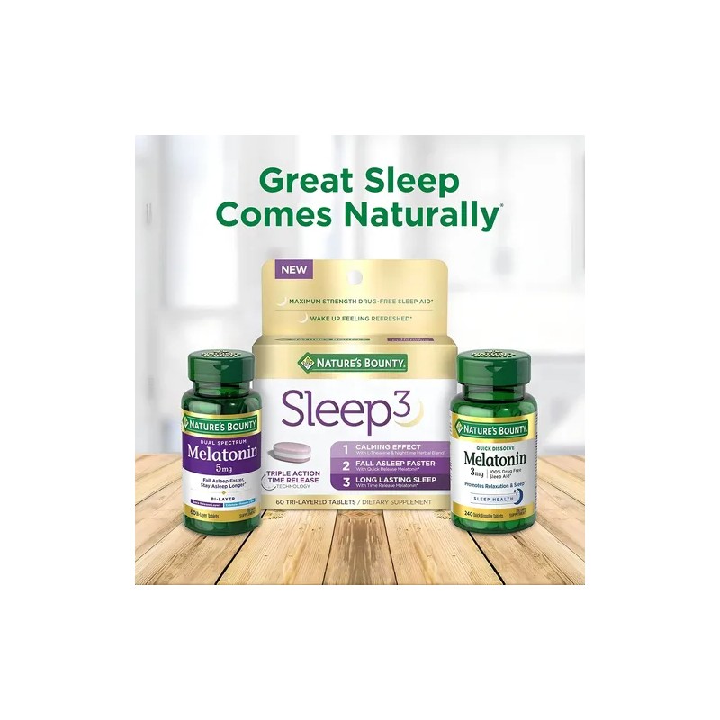 Nature's Bounty Melatonina 3 mg, apoya la relajación, promueve un sueño profundo y reparador, suplemento dietético, 240 unidades, no contienen gluten, lácteos, trigo y son aptas para vegetarianos