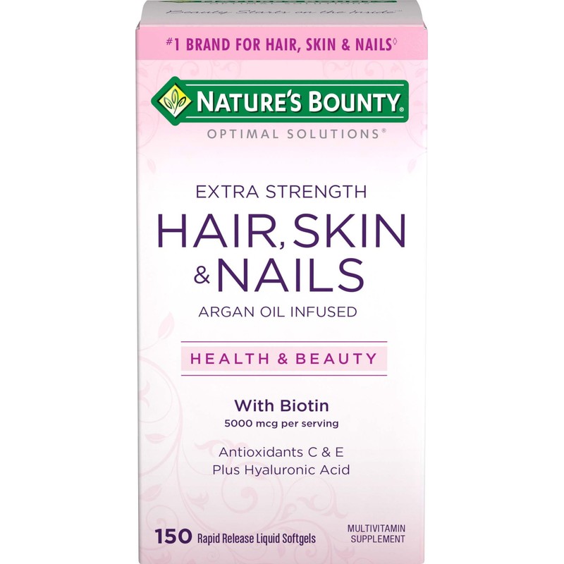 Nature's Bounty Optimal Solutions Hair Skin & Nails Extra Strength Softgels, 150 Count