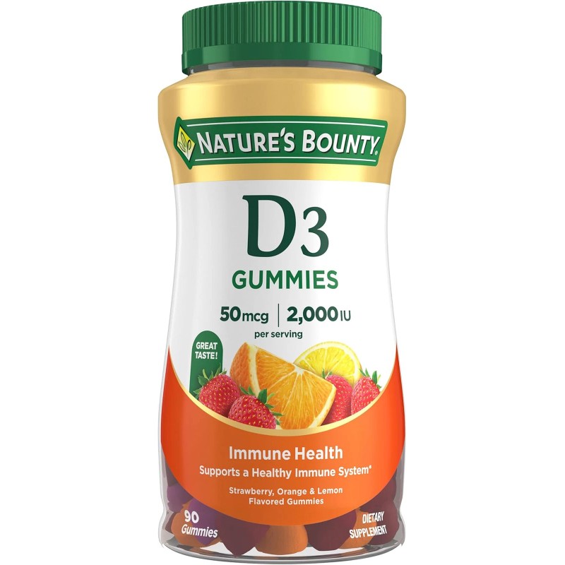 Nature’s Bounty Vitamin D3 Gummies 2000IU Immune Support Mixed Fruit 90 Ct