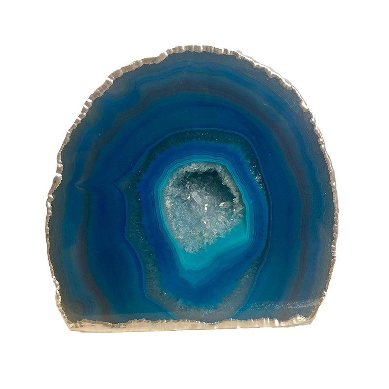 Welcome agate's calming properties into your home with this luxury geode. Display it in any room for a chic look and pop of color.