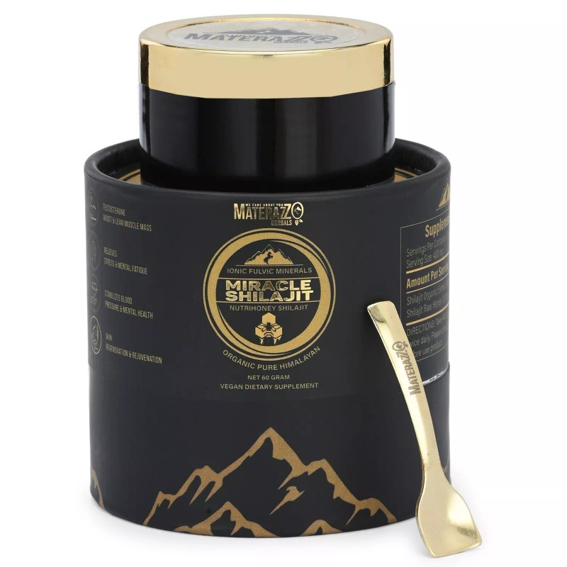 MIRACLE SHILAJIT RESIN - 100% Pure Shilajit resin freshly harvested from Himalayan Gilgit Baltistan Mountain at an altitude of 18,000 feet. Shilajit level is rich in fulvic acid, humic acid, amino acids, and over 85+ kinds of trace minerals. Our Shilajat committed to provides you with a premium and authentic pure shilajit resin that has been used as a powerful substance to rejuvenate the body and mind for thousands of years.