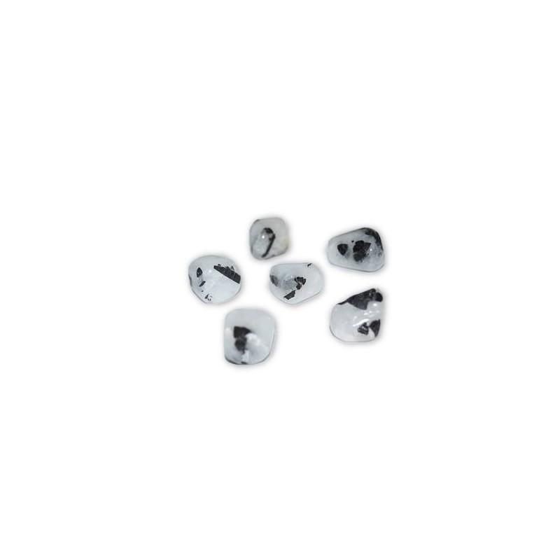 1 pc. Approx. 0.75-1" Tourmalated Quartz, also called Tourmalinated Quartz, shares the properties of its components – the grounding and deflection of negative energy found in Tourmaline, as well as the energy amplification and consciousness raising ability of Quartz. Tourmalated Quartz can help bring balance to the Yin and Yang energies, and is often used as a good luck charm. Black Tourmaline, or Schorl, which is most commonly the type of Tourmaline found in Tourmalated Quartz, is a well known stone in metaphysical circles. Used for grounding and clearing, Black Tourmaline is also exceptional at blocking and transmuting negativity, making it a wonderful stone for releasing fear and worry, and for protection of one's energy field. Black Tourmaline is also used for clearing away electromagnetic pollution from sources such as computers and cell phones. Clear Quartz is known as the master healer of the mineral kingdom and is often used for enhancing psychic abilities. It has the energetic property of amplification, focus, and programmability. Crystal lovers know Clear Quartz to be a great tool for manifestation and spiritual growth. Meditating with Clear Quartz can help one to attune to the soul purpose. Clear Quartz can open and activate the chakras. Clear Quartz is also a great tool for manifestation grids and body layouts, but must be cleansed regularly. The combination of Clear Quartz and Black Tourmaline creates a powerful ally in one's spiritual growth. While the Quartz can be an aid to those on the spiritual path, the Black Tourmaline can help keep one well-grounded, thus avoiding that out-of-touch sensation that can often result from being too focused on the higher pursuits. Black Tourmaline in Quartz can also help one to avoid picking up negative vibrations from the environment or other people, making it a great crystal for one's pocket or purse. Tourmalin