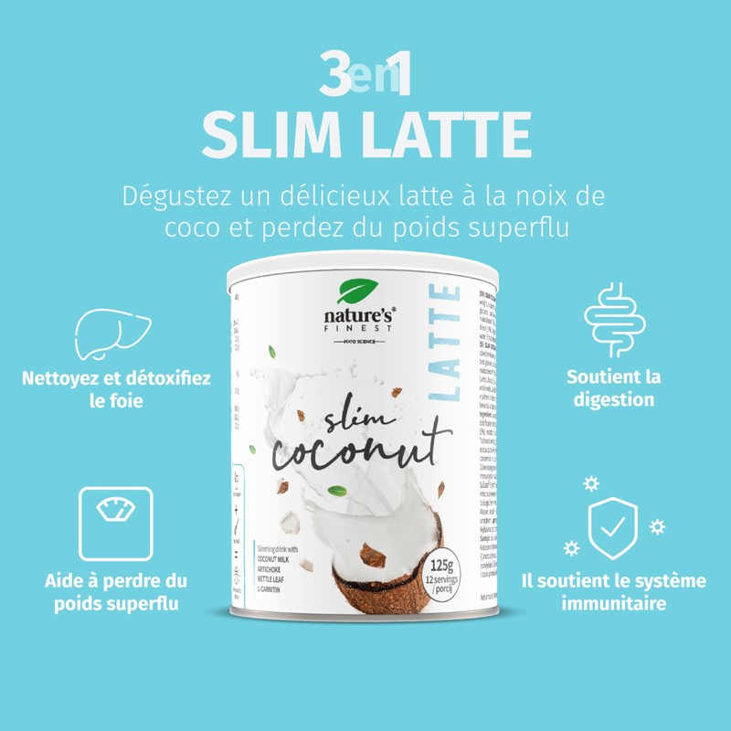 - Delicious 3-in-1 Slimming Latte for Daily Wellness - Nature’s Finest Coconut Slim Latte combines natural flavour with powerful plant extracts to support weight management, liver detox, and digestive health. Enjoy a creamy, coconut-flavoured drink while helping your body feel lighter, balanced and energised.