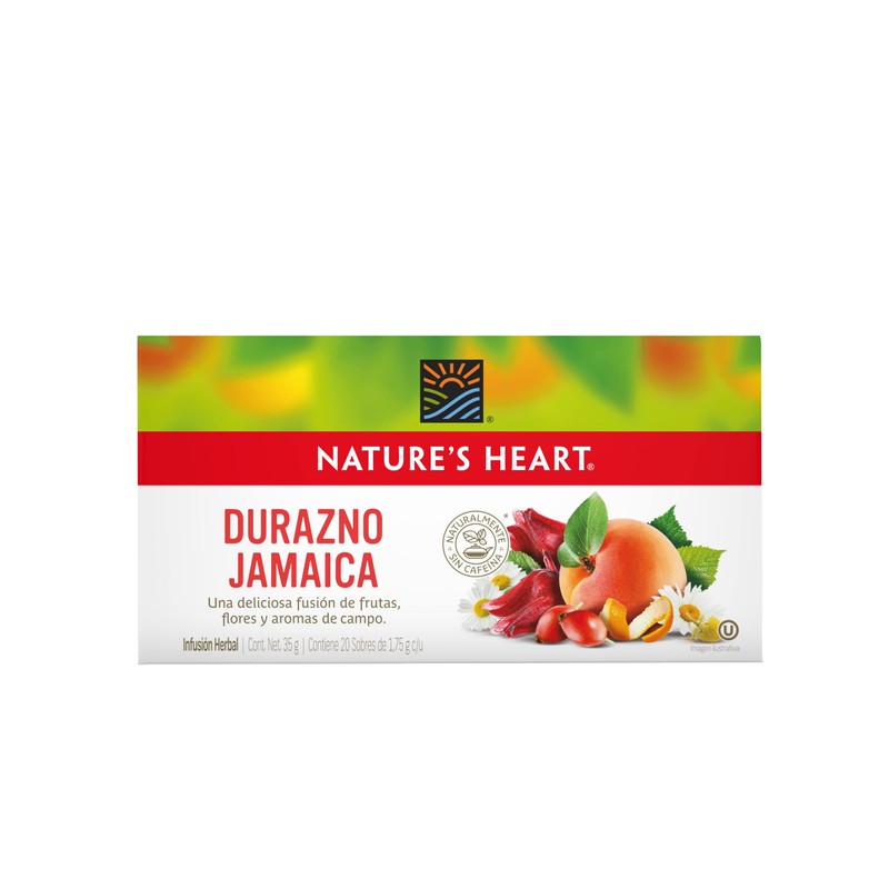 Nature's Heart Té de Durazno, Naturalmente sin Cafeína - 20 Sobres