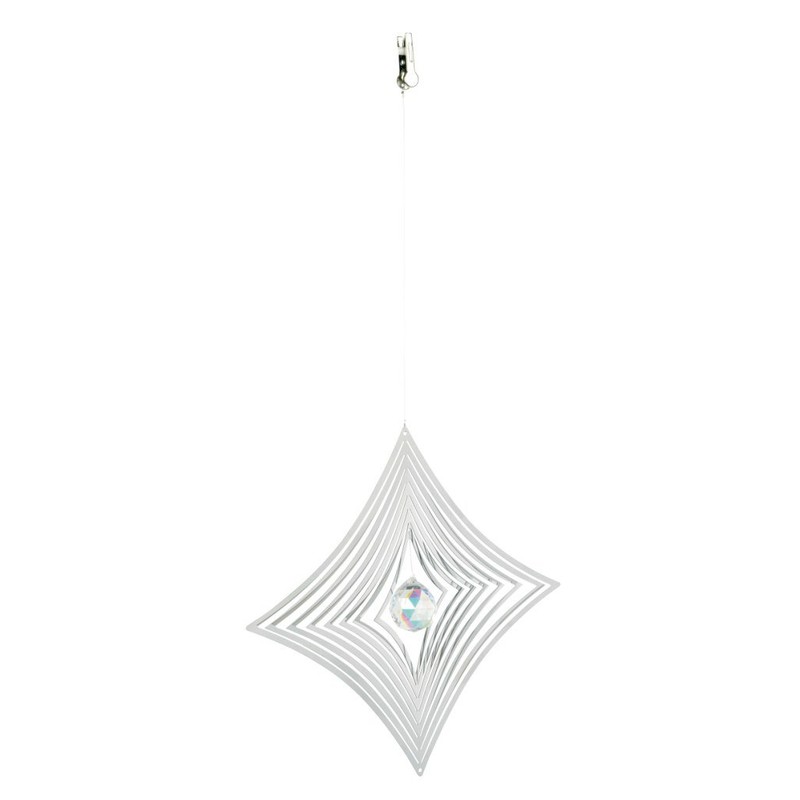 - 13cm (5 inch) stainless steel diamond wind spinner with centre glass Crystal.