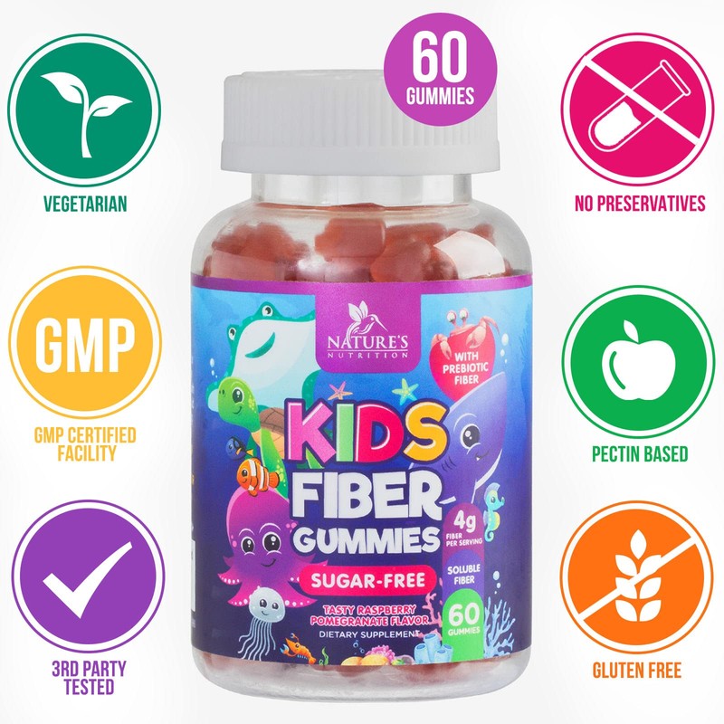 - RELIABLE FIBER GUMMIES FOR KIDS: Nature's Nutrition Kids Sugar Free Fiber Gummy Bears are specifically formulated to support digestive health in kids 4+ with prebiotic dietary fiber