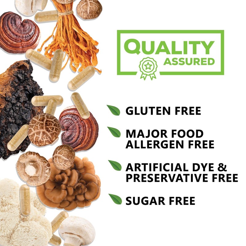 - POWERFUL 10-In-1 BLEND: Unlock the power of nature with our advanced Mushroom Complex featuring Lions Mane Mushroom, Maitake, Turkey Tail, Reishi, Shiitake, Cordyceps Sinensis, Chaga, Royal Sun Agarcus, White Button & Black Mushroom