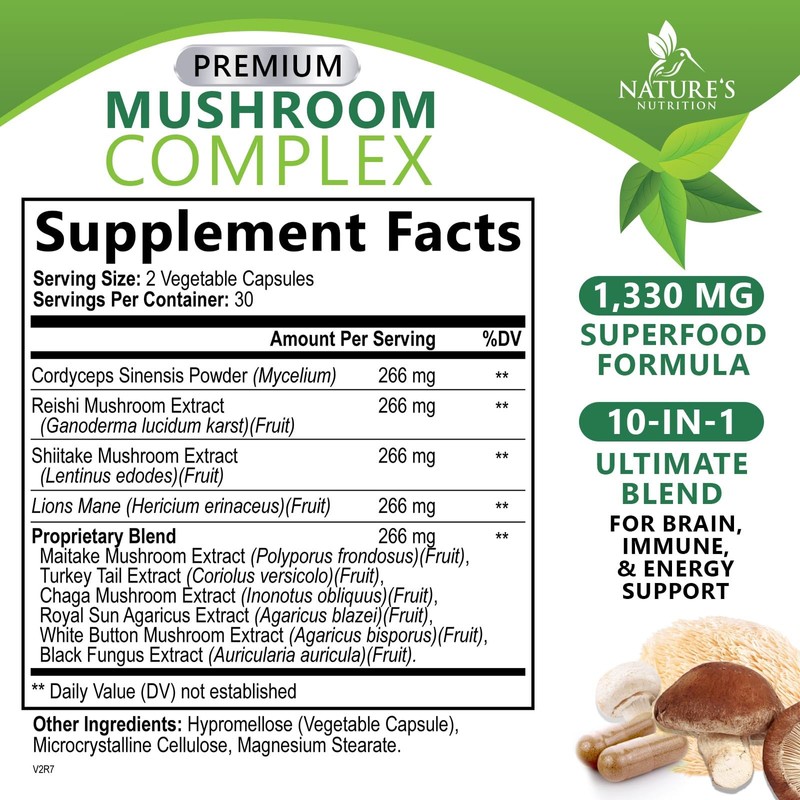- SUPER MUSHROOMS SUPPLEMENT: Nature's Nutrition best mushroom complex capsules nootropic brain blend caps natural focus memory pills cordyceps extract health herbal immune support lions mane capsule lion s maine supplements lionsmane powder seniors superfood vitamins women calm vegan real reishi shiitake stamets turkey tail chaga clean coffee count defense dynamic energy gummies maitake nutraceutical phosphatidylserine 1000mg 120 2000mg 20in1 3000mg 60 7