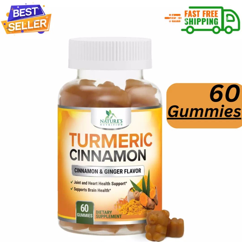 Turmeric Curcumin Gummies 95% Curcuminoids with Cinnamon, Ginger & Black Pepper Extract for Max Absorption Joint Support Supplement, Nature's Herbal Turmeric Gummy Pills, Vegan Non-GMO - 60 Gummies
